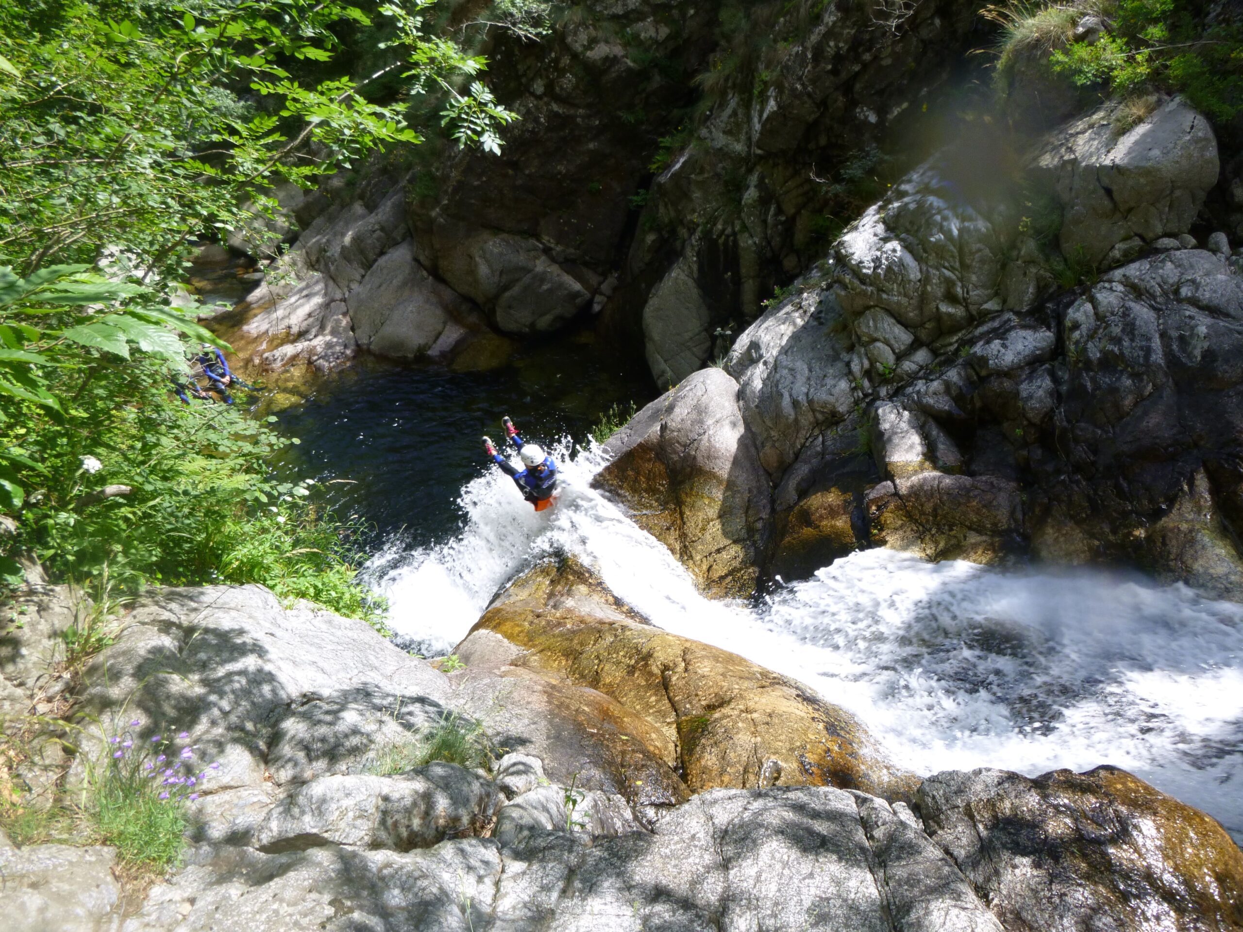 Ensuite, c’est un canyon complet, à la fois sportif et technique. C’est pourquoi le long de la descente vous ferez face à de nombreux obstacles dont des sauts techniques jusqu’à 9 mètres, des toboggans naturels et des bouillons de cascade !